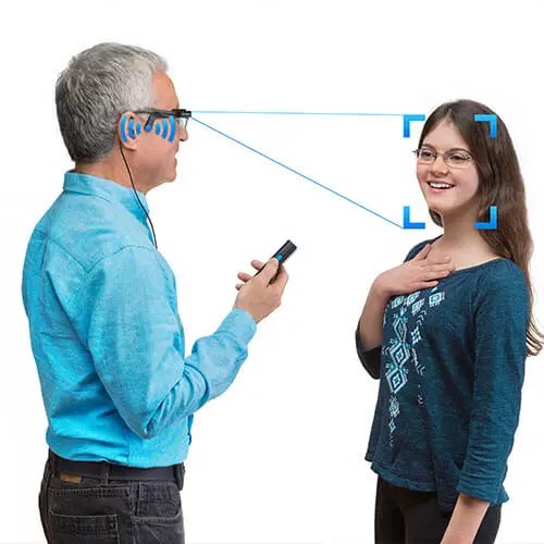 A nice advantage of the Orcam products are that they can be used in an inconspicuous manner. Many students and adults who need assistance in reading prefer to do so inconspicuously. This is particularly true of students who prefer not to stand out from their peers while using assistive technology in school. Often professionals in schools find that students reject using assistive technology for the very reason that the technology makes the student appear different from other students. When the technology is inconspicuous it allows both adults and students to not appear different from their peers.